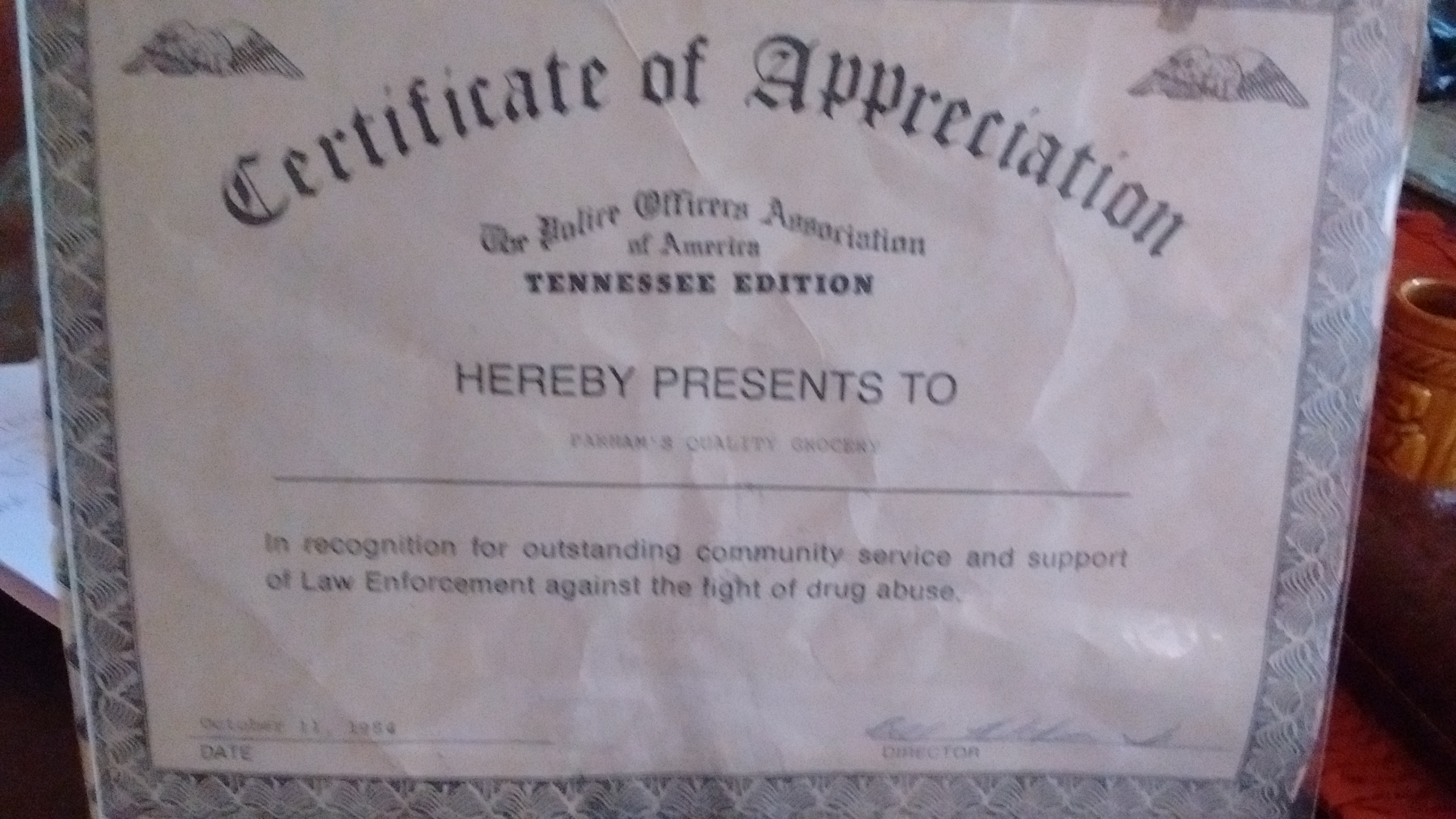 Roshell Parham "Mr. P" and his wife Jimmie Parham were the original founders of Parham's Groceries. The Original location was 706 Hayes Ave Jackson, Tennessee. It was a small store on the corner of Hayes and LaConte.